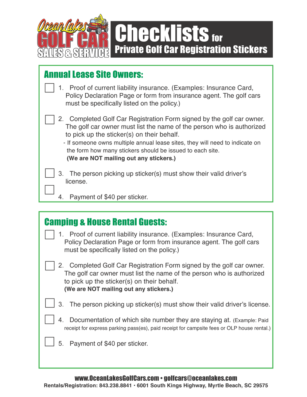 Registration Checklist Ocean Lakes Golf Cars Myrtle Beach Sc 843 828 4868